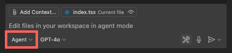 Alternatively, open vscode command palette (Ctrl+Shift+P or Cmd+Shift+P) and type "Chat: Open Chat" then select agent mode.